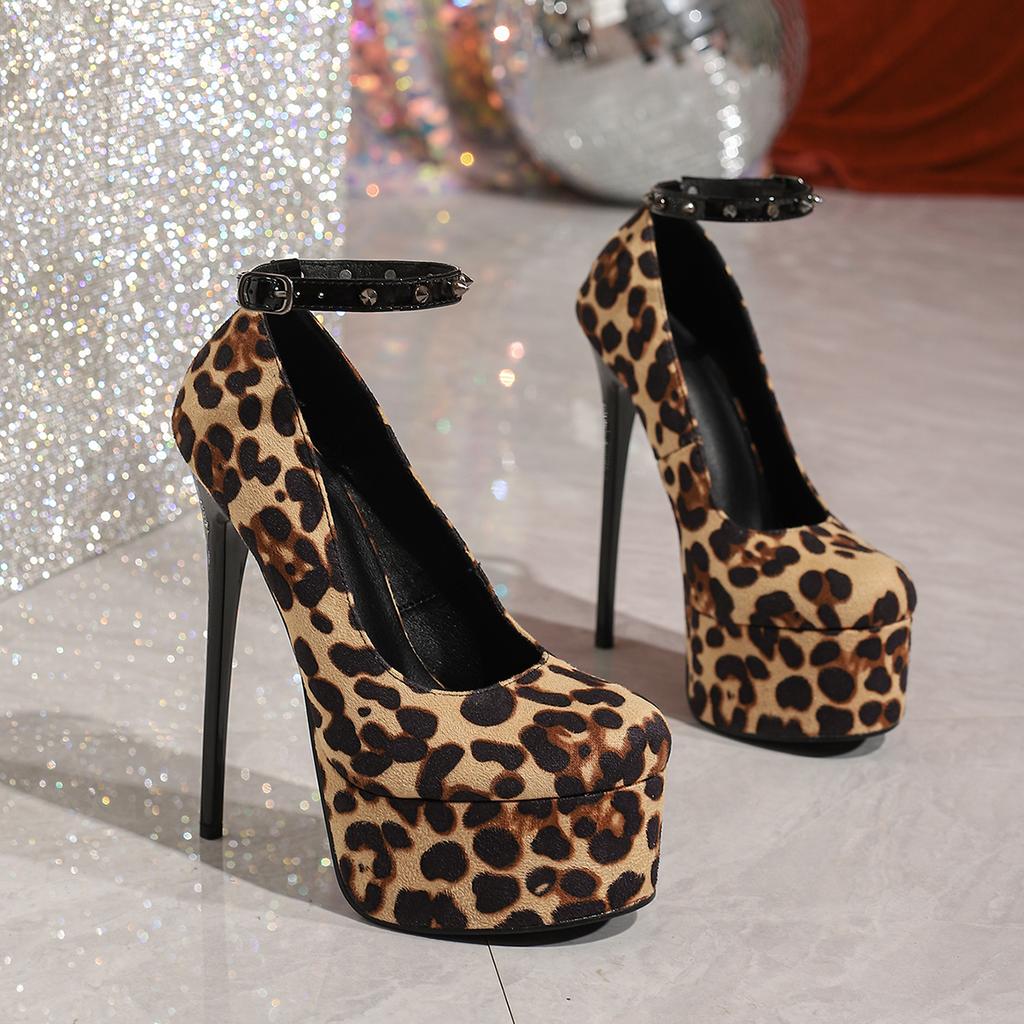 Сексуальные женские туфли-лодочки с леопардовым принтом, большие размеры 35-42, с круглым носком, на очень высоком каблуке, новинка весны, женские туфли на платформе для вечеринок, офисные