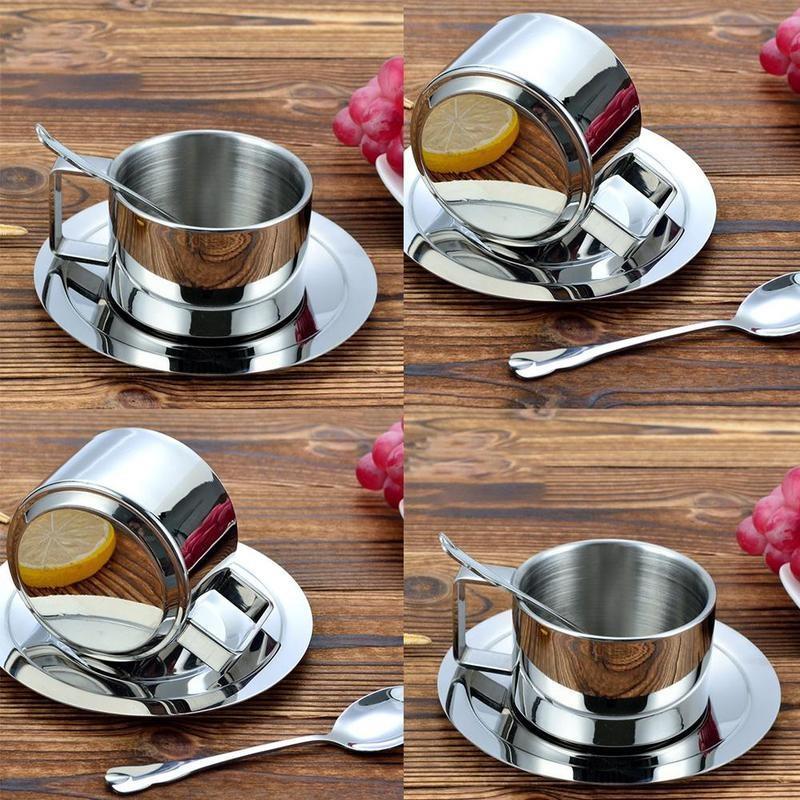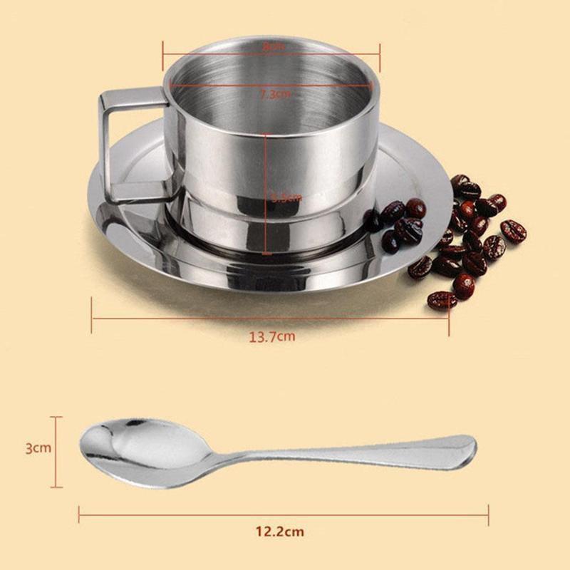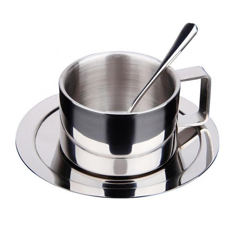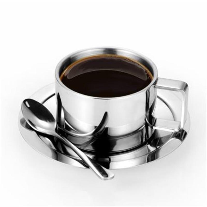 Новый набор из нержавеющей стали: кофейная чашка, блюдце и ложка. Кофейная кружка. Подарки KTY