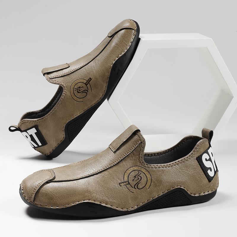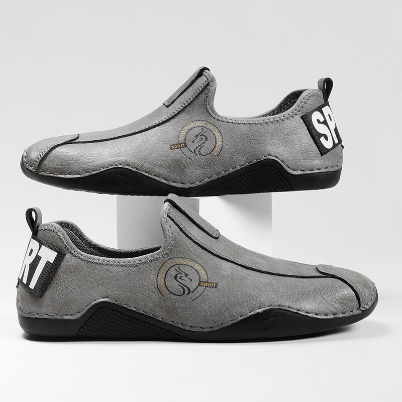 Мужская кожаная обувь, 2025 новый стиль повседневная обувь, осенние ботильоны на плоской подошве однотонные, легкие мужские туфли для вождения