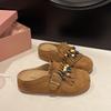 2025 Весна-осень Модные цельные туфли на толстой подошве, увеличивающие рост, на полукаблуке, женские шлепанцы с повязкой в ретро-стиле
