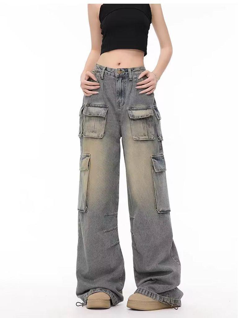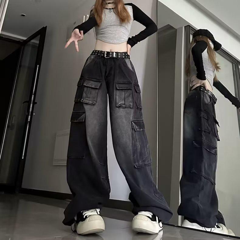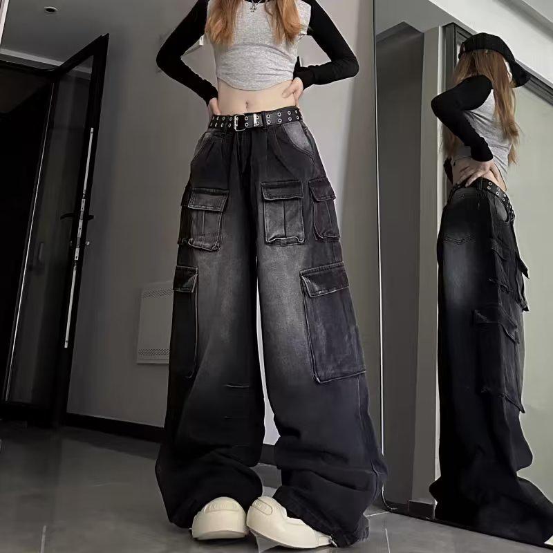 Унисекс Ретро Уличные Комбинезоны с Широкими Штанинами – Модные Джинсы Свободного Покроя для Весны и Осени