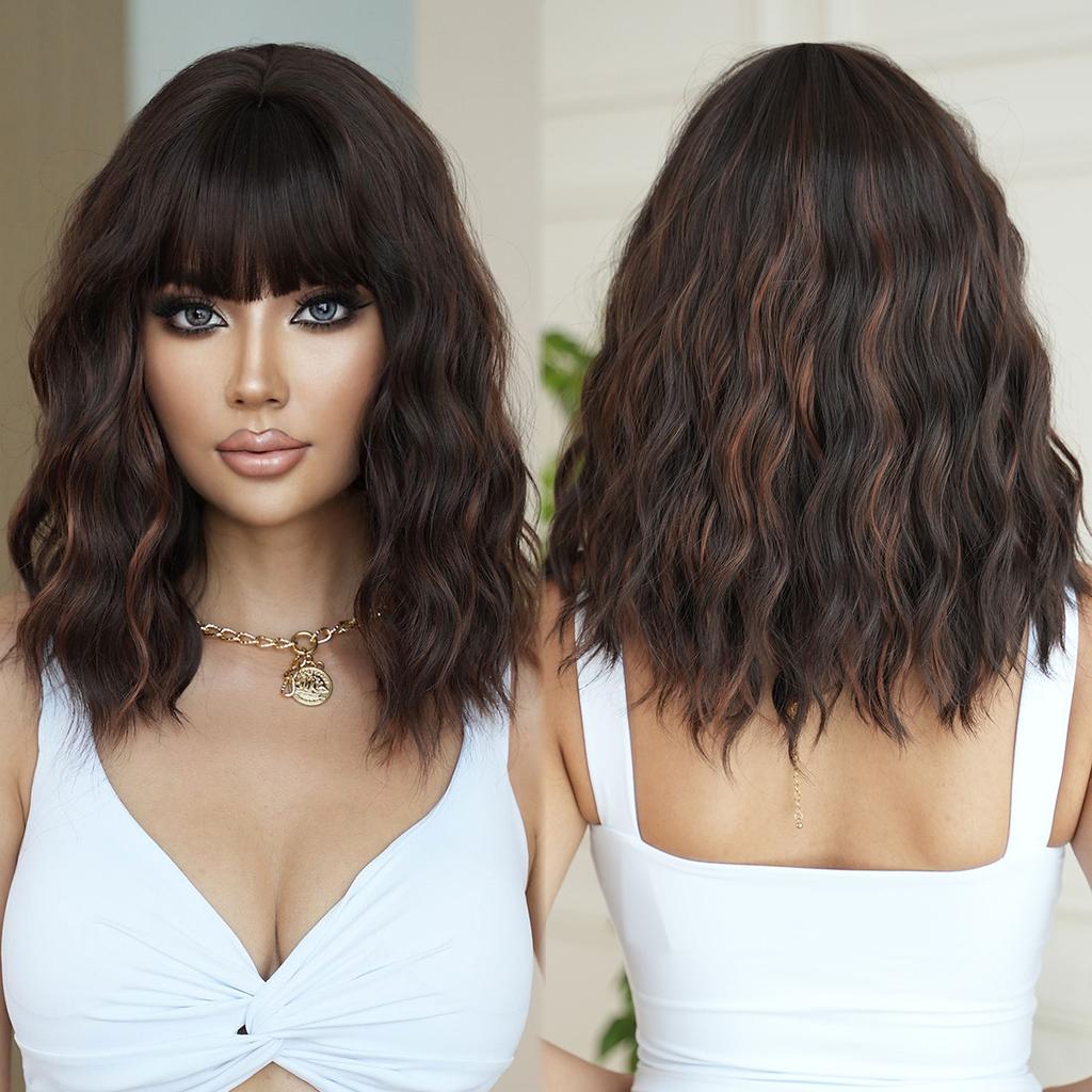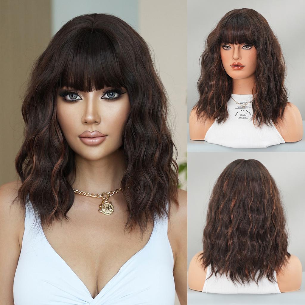 Синтетические парики средней длины с волнами, золотисто-коричневого цвета, с челкой, женские, светлые волосы, на каждый день, для вечеринок, для костюмов, термостойкое волокно