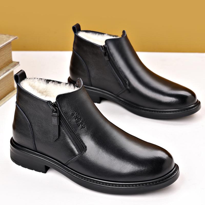 Зимняя мужская хлопковая обувь кожаная шерстяная повседневная кожаная обувь бархатная теплая деловые кожаные ботинки папа мужская обувь