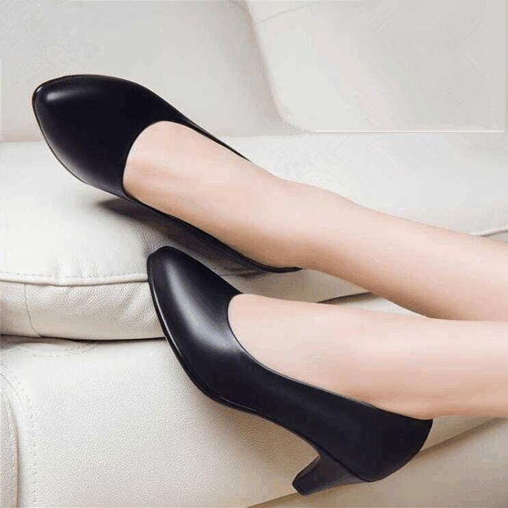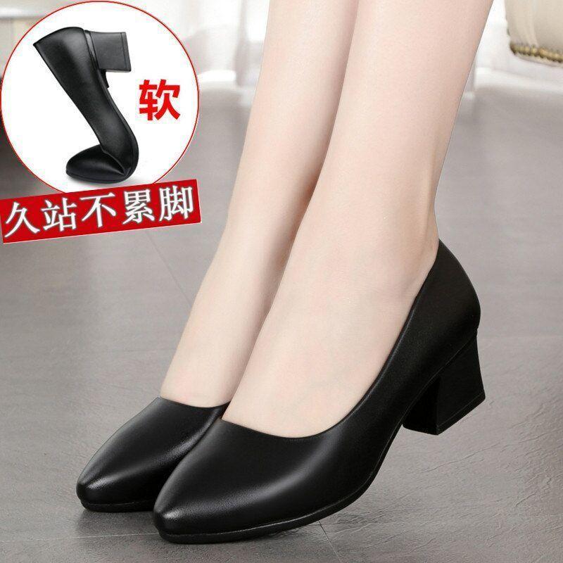Туфли на толстом каблуке черные универсальные на среднем каблуке туфли для мамы одинарные туфли из платьевой кожи профессиональная обувь бортпроводника туфли для работающих женщин