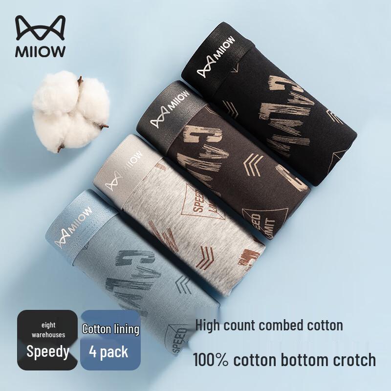 MIIOW Мужское антибактериальное нижнее белье из 60S гребенного хлопка, 4 штуки