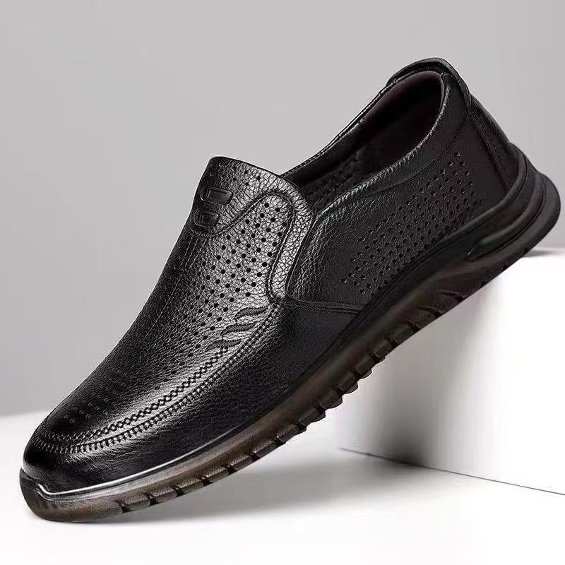 Мужские кожаные туфли на подошве из коровьей жилы, летние, полые, дышащие, с мягкой подошвой, для вождения, повседневные, с мягкой поверхностью, с мягкой подошвой, деловые туфли