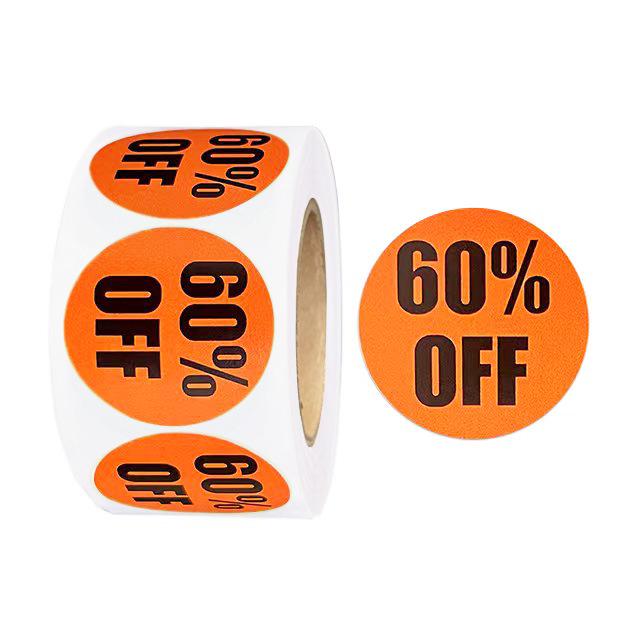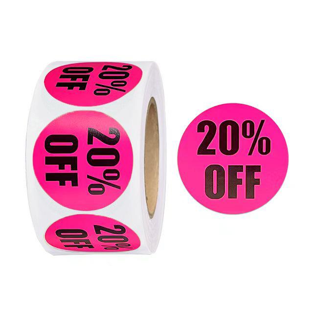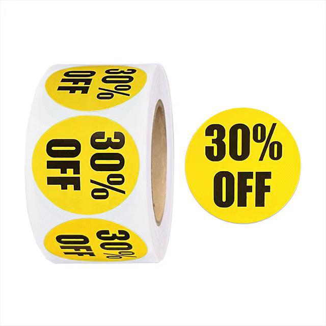 Круглые дисконтные наклейки диаметром 1 дюйм: Черный текст на цветных самоклеящихся этикетках для товаров со скидкой (25MM)