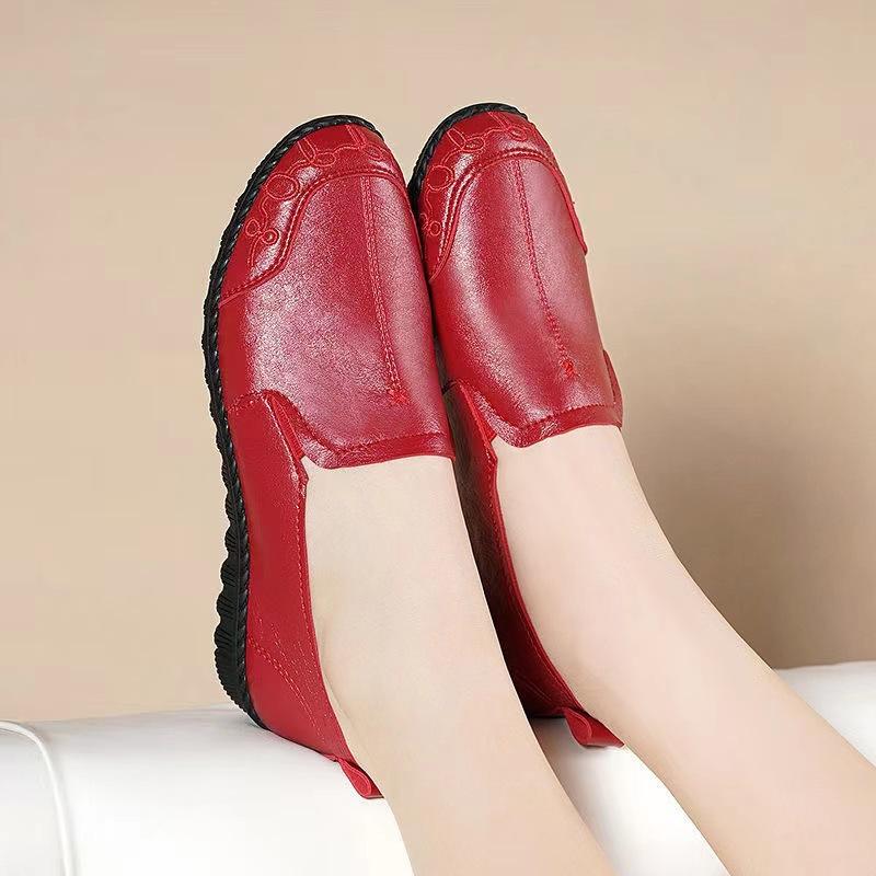 Мягкая кожа ручной работы мягкая кожа мягкая подошва нескользящие туфли для мамы и женщин удобные туфли для среднего возраста плоские повседневные одинарные туфли женские