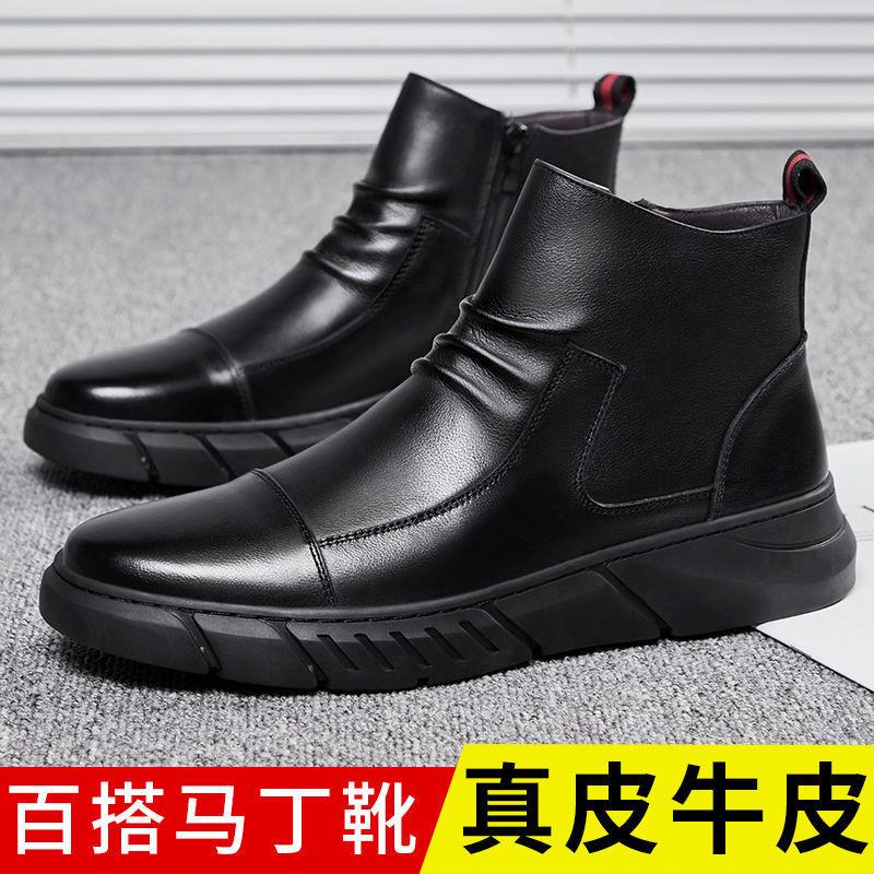 Ботинки мартин зимние мужские кожаные ботинки кожаные ботинки с высоким берцем бархатные теплые британские хлопковые ботинки повседневные кожаные ботинки мужские