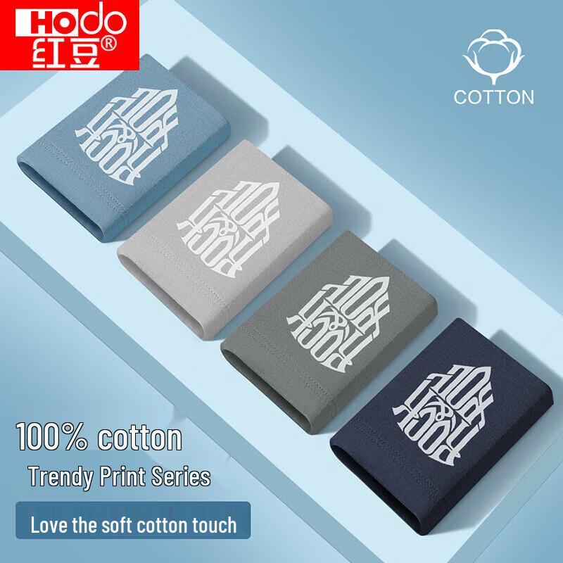 Мужские хлопковые антибактериальные трусы-боксеры с принтом Red Bean, 4 шт.