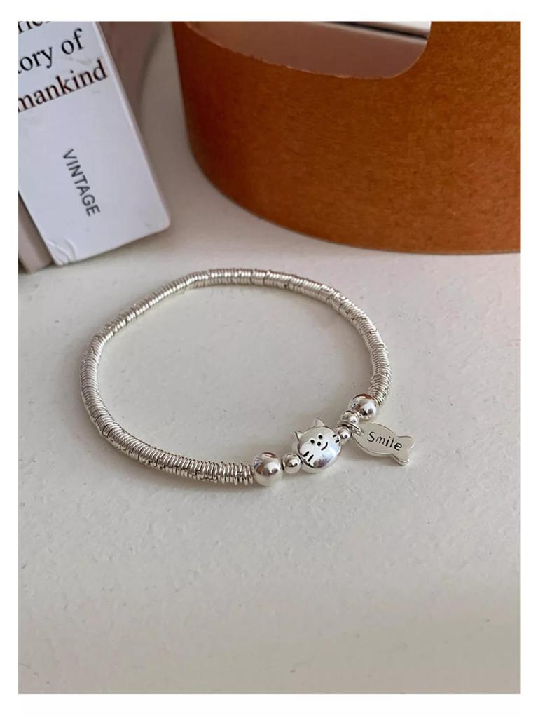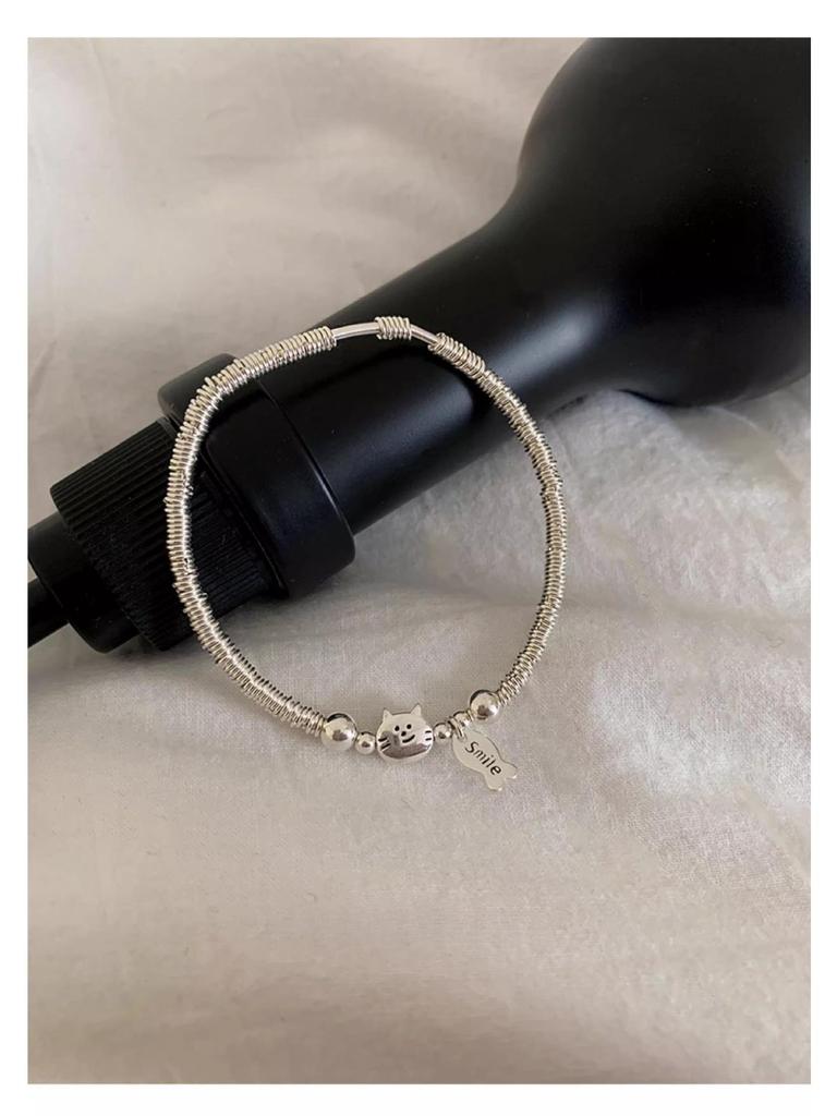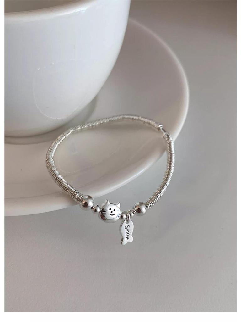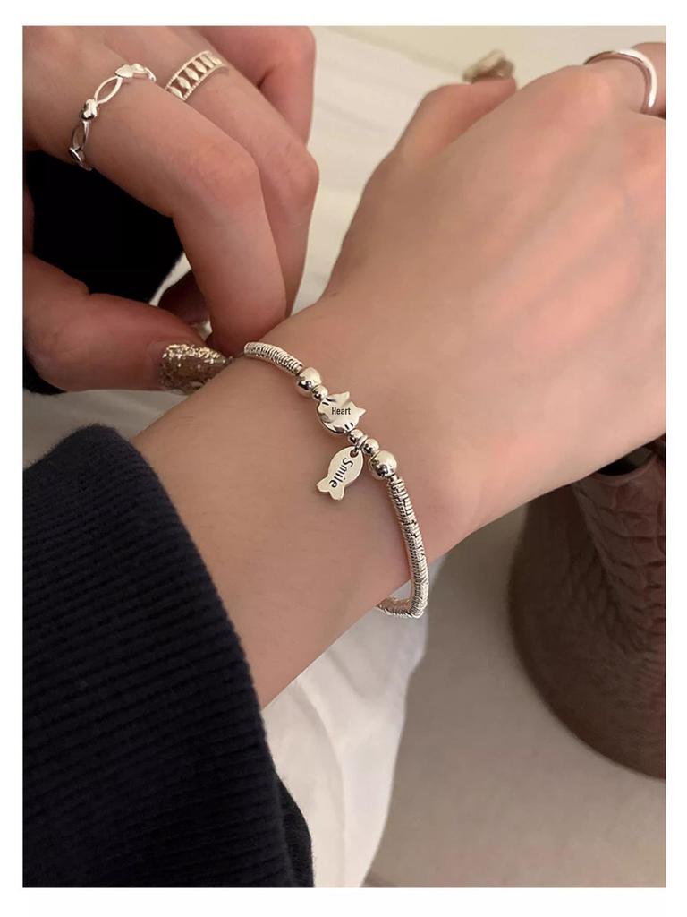 Элегантный браслет из стерлингового серебра 925 пробы с бусинами: Японский и корейский дизайн «рыба-кошка», легкая роскошь, нишевый, универсальный, изысканные женские украшения
