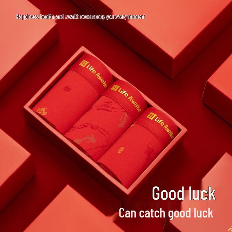 Мужские антибактериальные боксеры-брифы HLA Lucky Red, 3 штуки