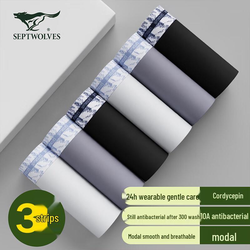 SEPTWOLVES Мужские антибактериальные модальные боксеры-брифы с кордицепсом, 3 шт.