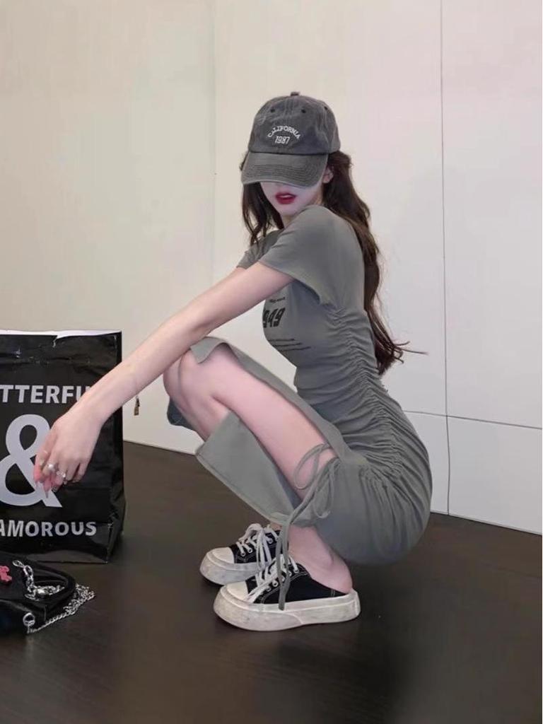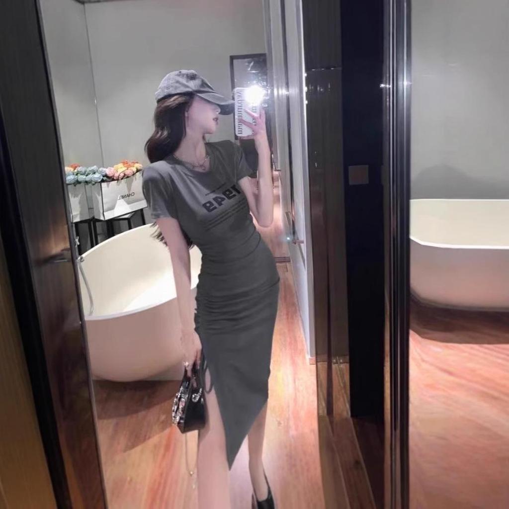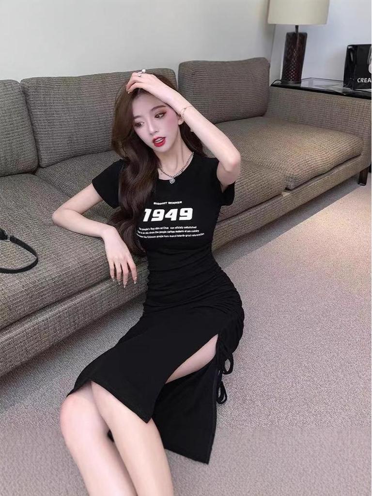 Шикарное летнее платье с разрезом по бокам, кулиской на талии и присборенной юбкой