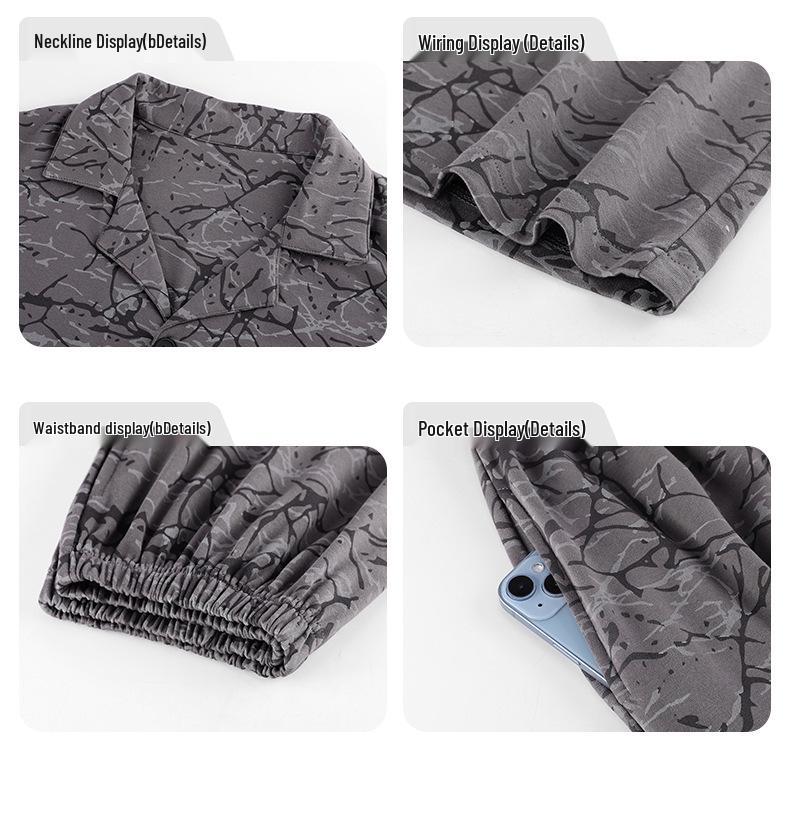 Мужской хлопковый пижамный комплект - Лонгслив и брюки, Весна-Зима, Повседневная уличная одежда, Доступны большие размеры