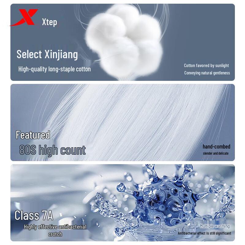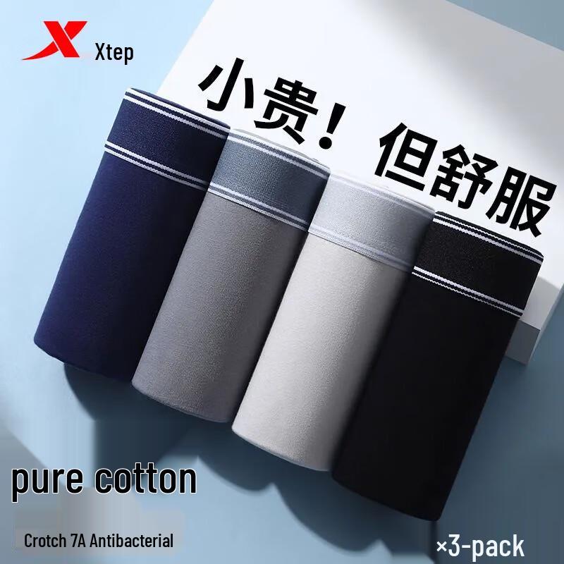 XTEP Мужские хлопковые антибактериальные боксеры-брифы 2025 - 3 шт.