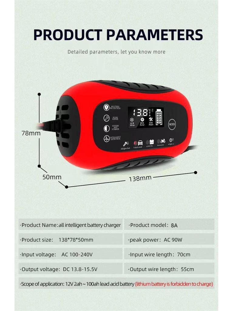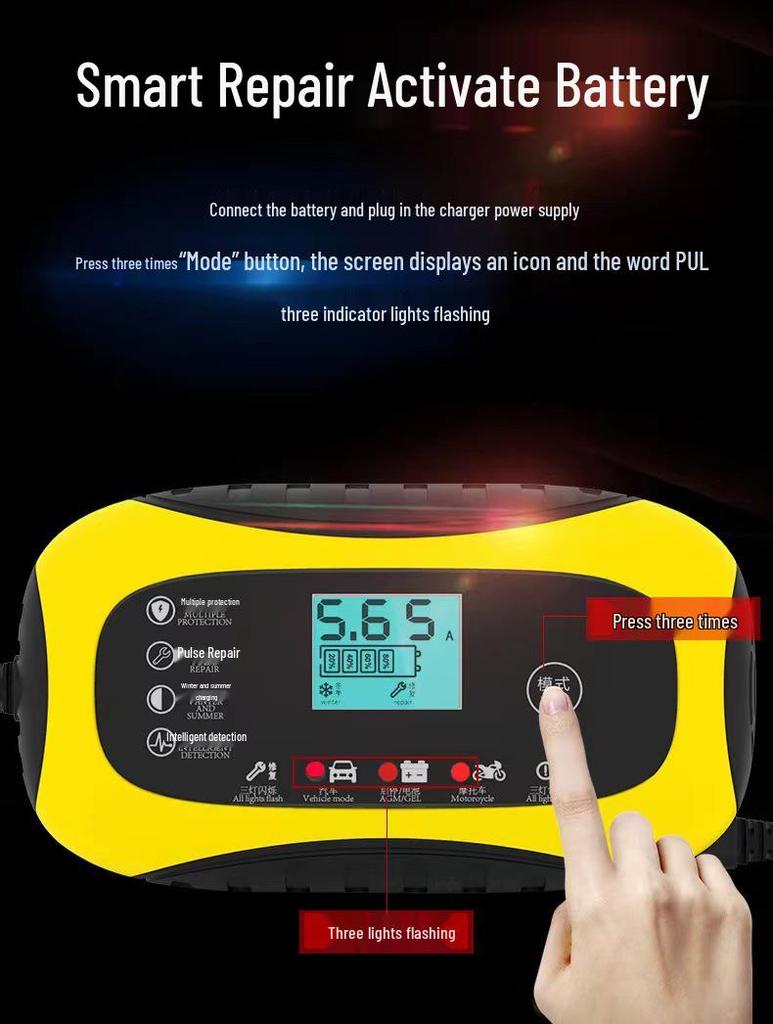Интеллектуальное импульсное зарядное устройство 12В 6А для необслуживаемых мотоциклетных аккумуляторов