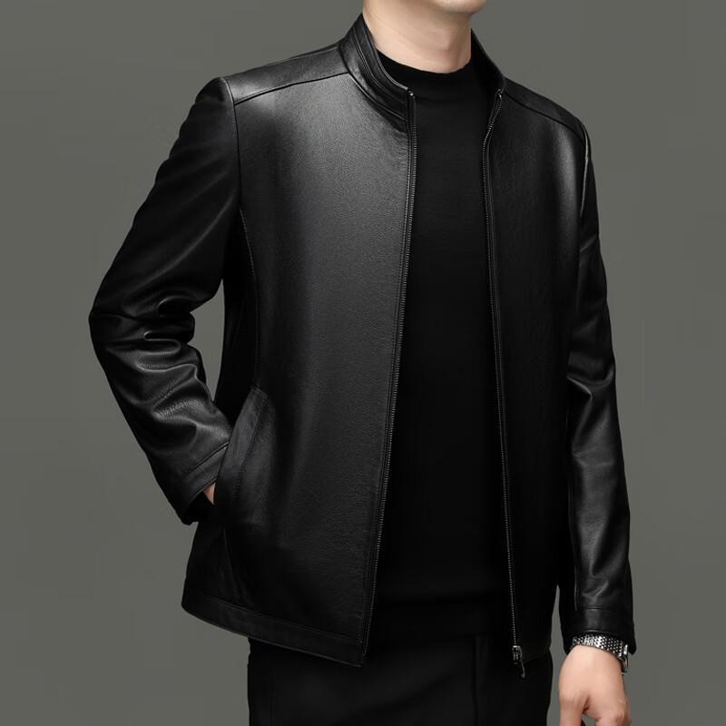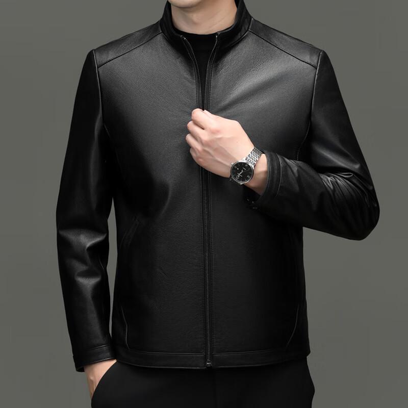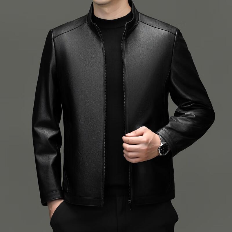 YILITENG Men's Stand-Collar Leather Business Casual Jacket
