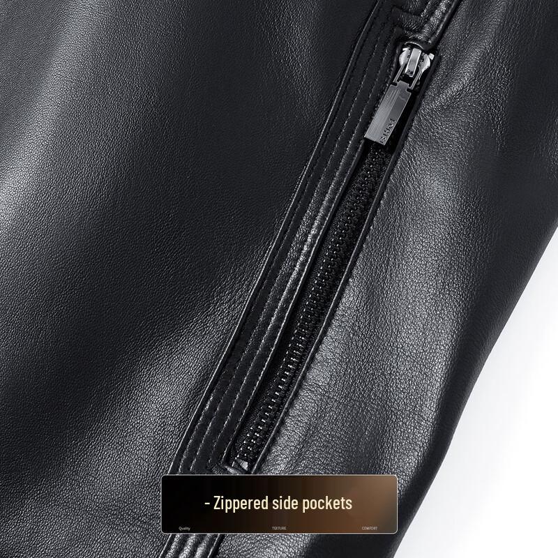 Men's Premium Sheepskin Stand Collar Moto Leather Jacket