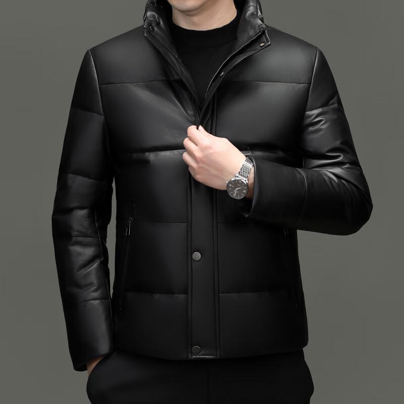 Yiliteng Men's Genuine Leather Goose Down Stand-Collar Puffer Jacket YTMMRSY23015