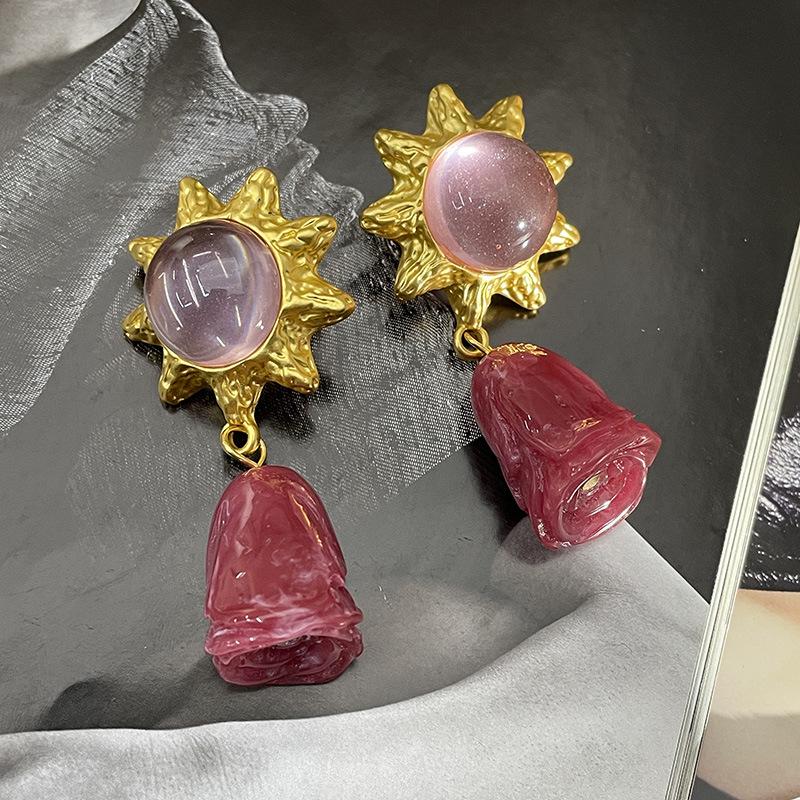 Винтажные серьги-пусеты в виде подсолнухов из розового кристалла с подвеской в виде розы для женщин