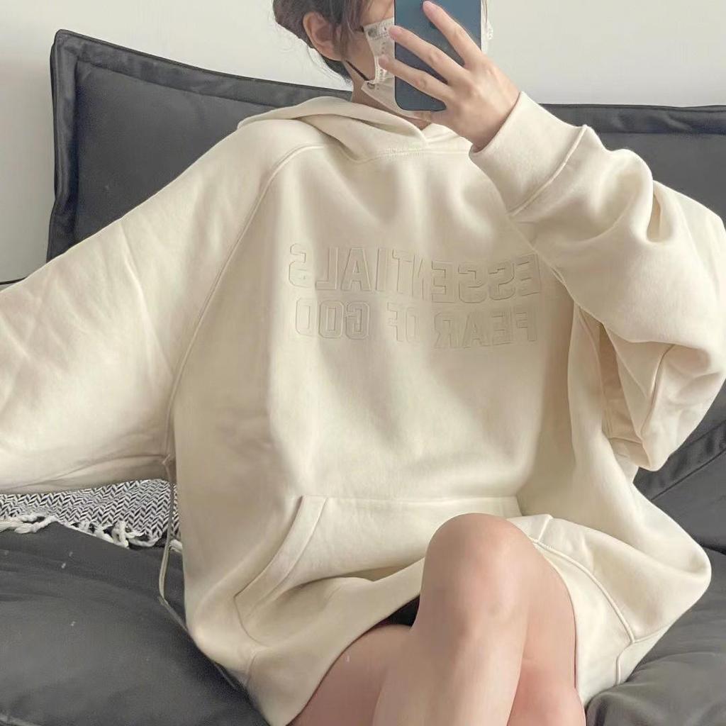 Худи FOG Essentials свободного кроя с двойной линией - Дизайн с силиконовыми буквами, Парная одежда для осени/зимы, Плюс теплота вельвета.