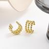 Элегантный французский C-образный трехслойный кафф для уха с простыми круглыми бусинами - Дизайн без пирсинга