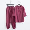 Мужской летний хлопково-льняной комплект в китайском стиле с застежками-лягушками и рукавами три четверти