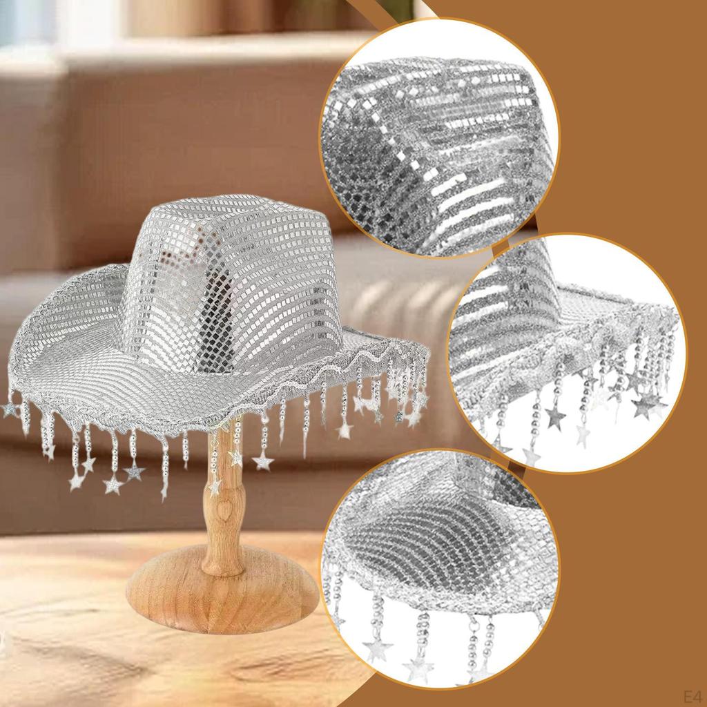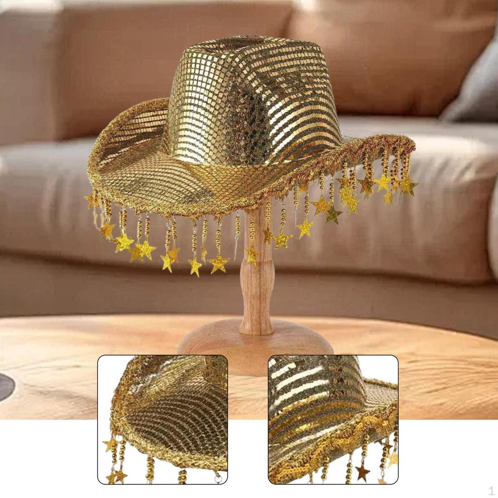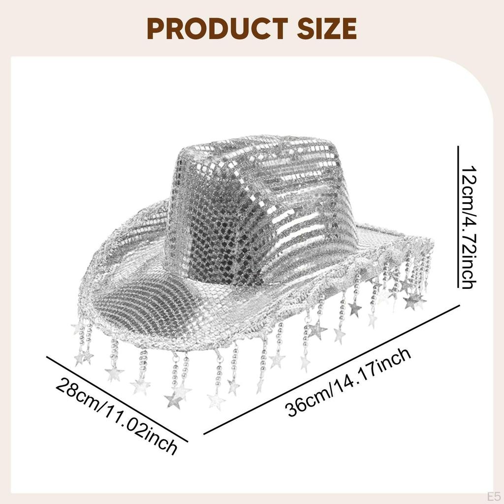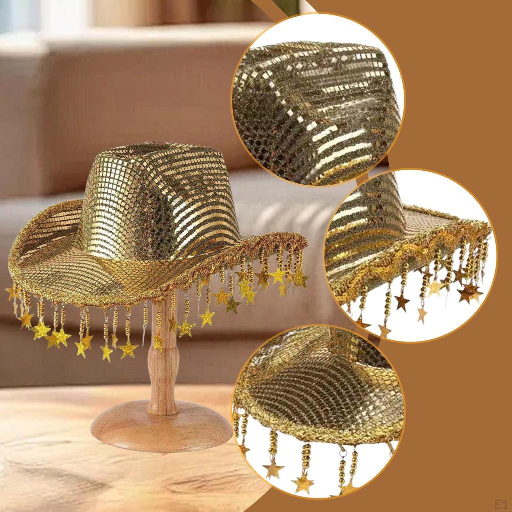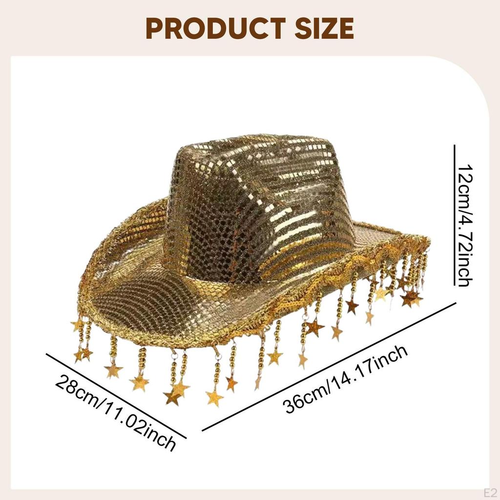 - 【Широкое применение】: Будь то карнавалы, фестивали, пляжные вечеринки, дискотеки, костюмированные балы, Марди Гра или маскарады и т. д.. Эта ковбойская шляпа с кисточками-звездами легко дополнит любое мероприятие или повседневный выход.