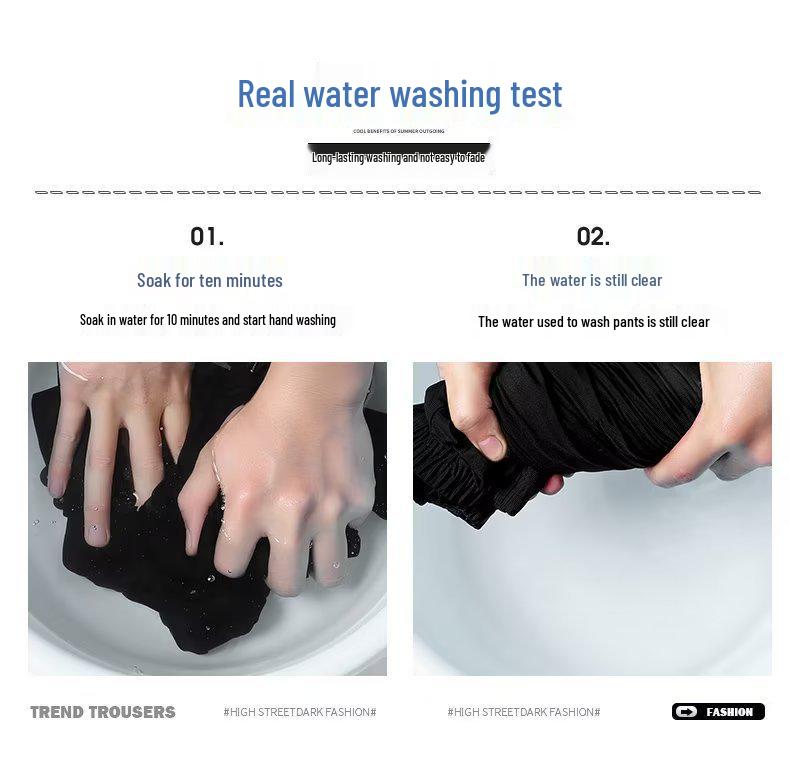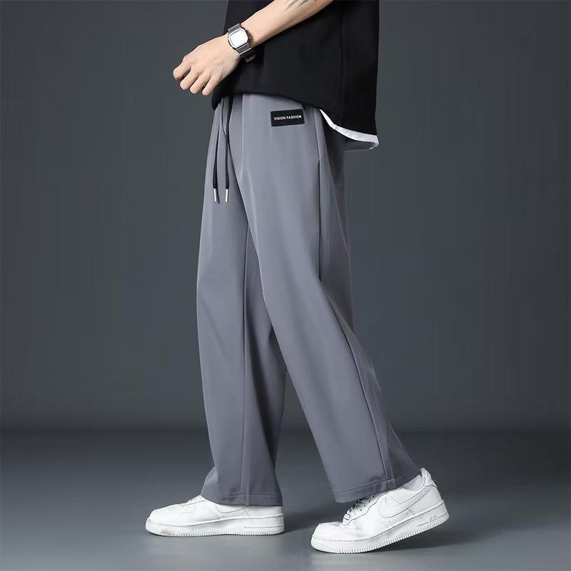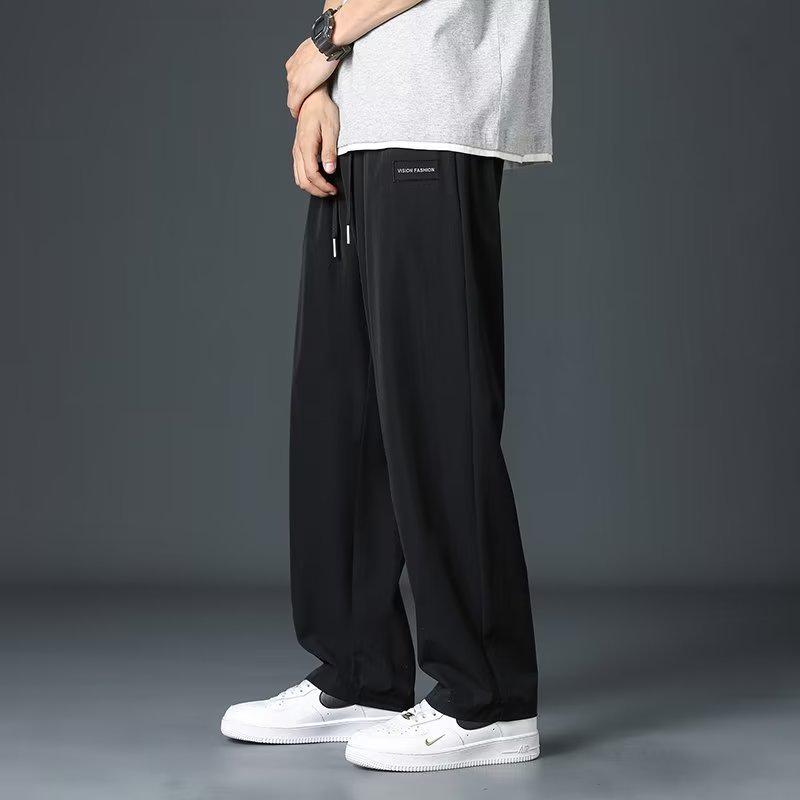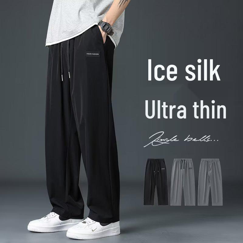 Мужские летние брюки из ледяного шелка с широкими штанинами - Тонкие, уличный стиль, повседневная драпировка