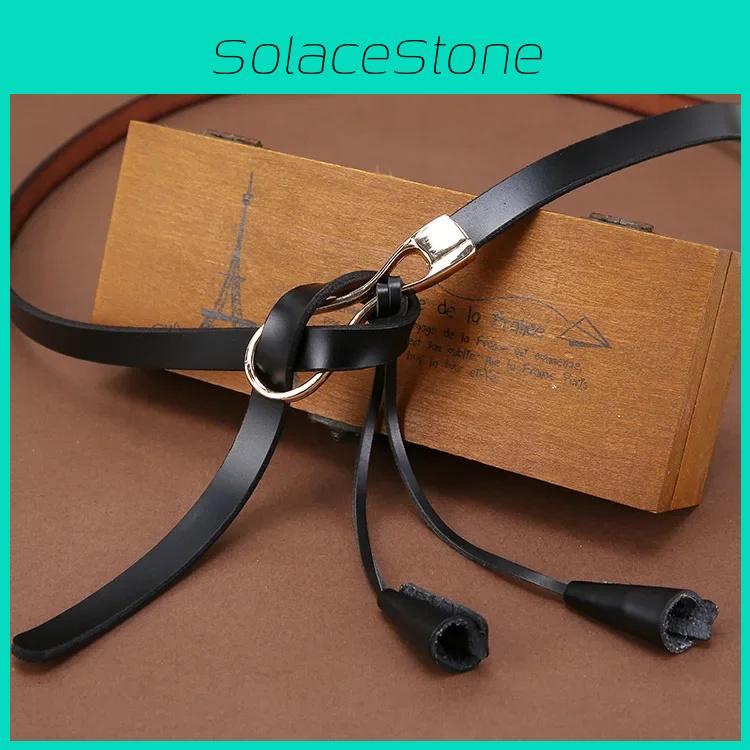 Тонкий ремень из натуральной кожи с узлом для женщин, с пряжкой из сплава, подходит для работы и отдыха