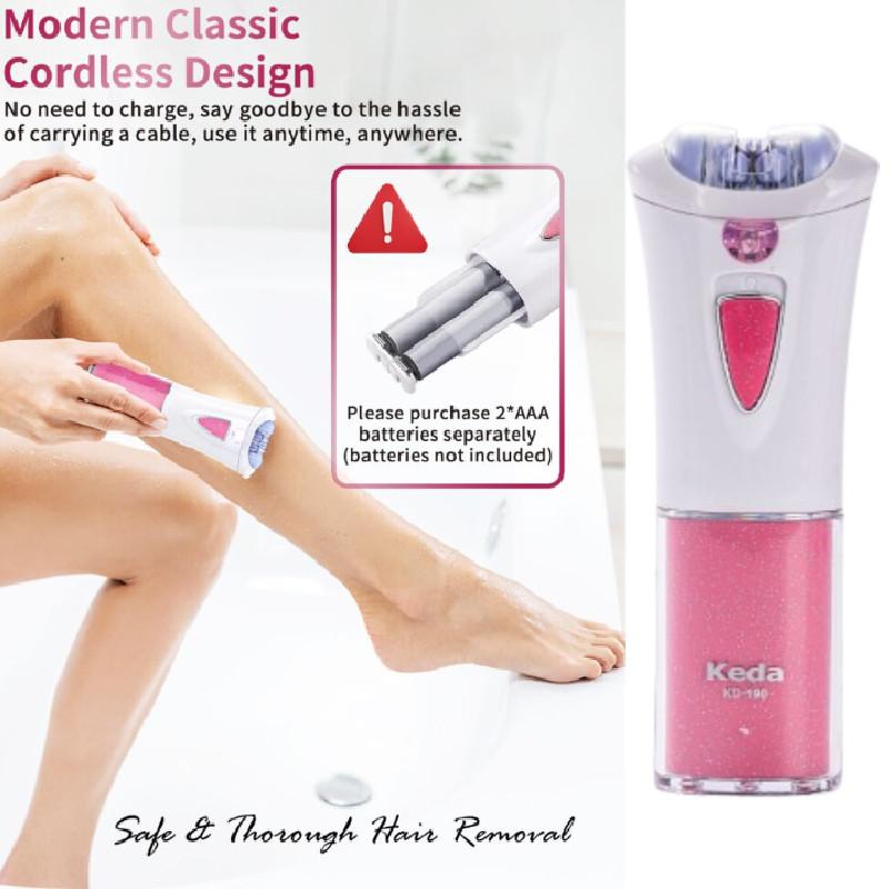 Электрический эпилятор KEDA-190 имеет компактный дизайн, изготовлен из прочного АБС-пластика. Он использует технологию моторизованного выщипывания для эффективного удаления тонких волос со всего тела.. Работает от сухих батареек и оснащен встроенной подсветкой, что обеспечивает точное удаление волос.