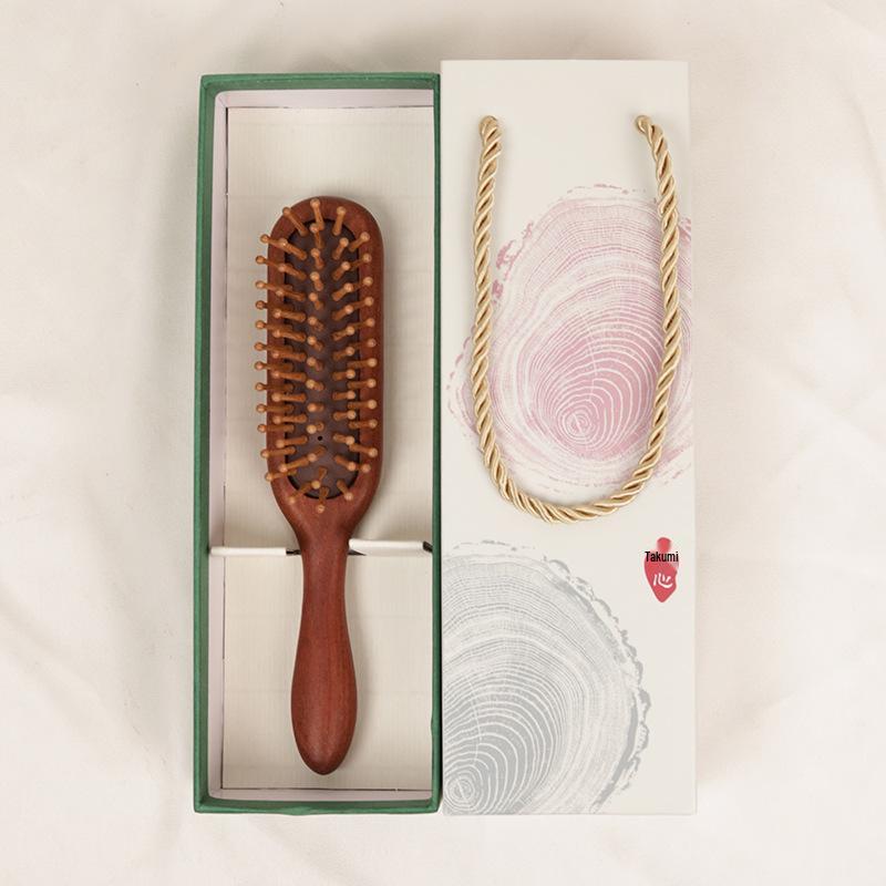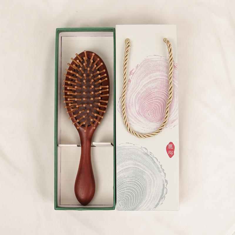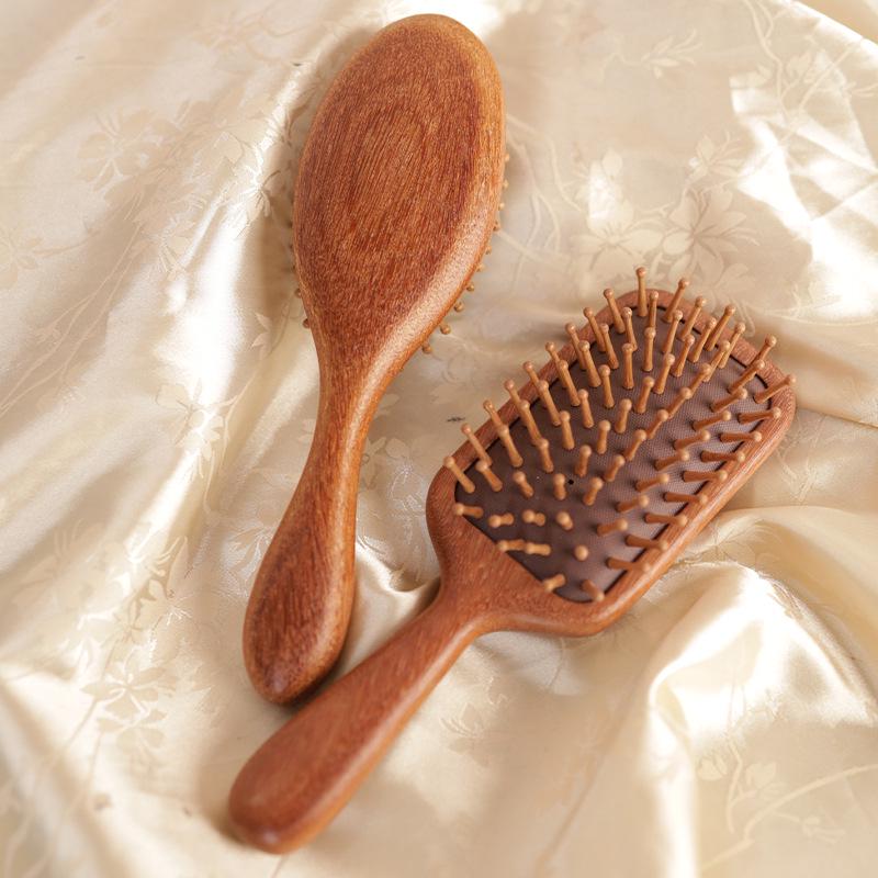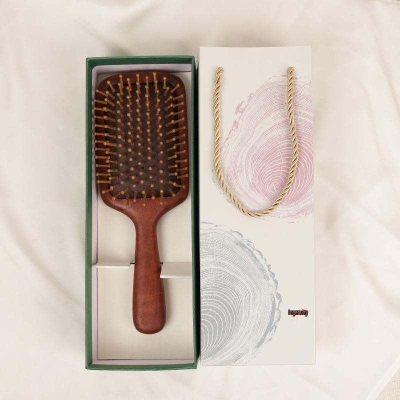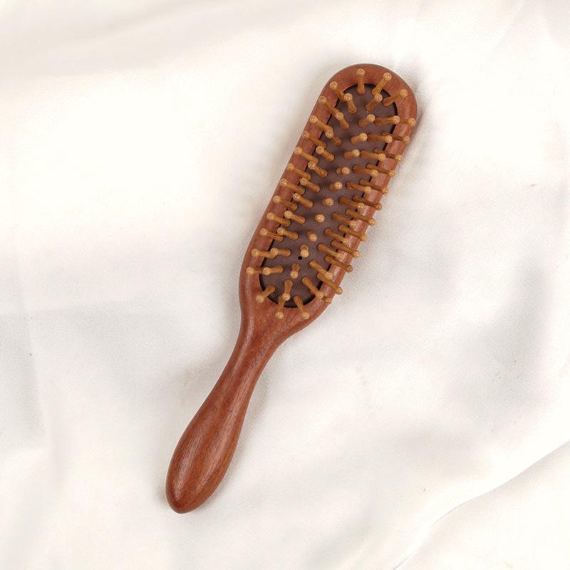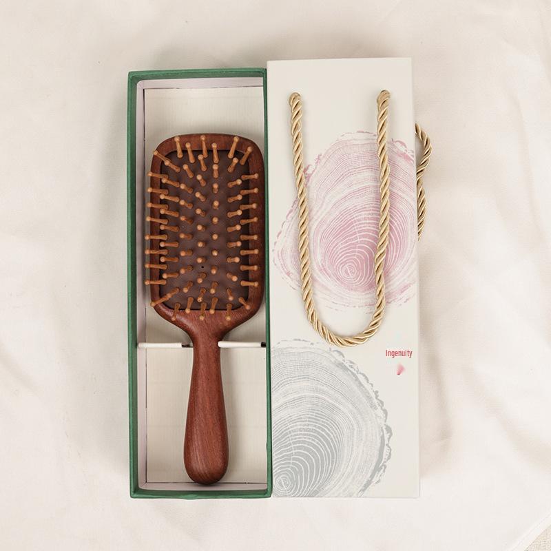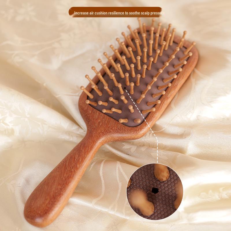 Большая красная сандаловая массажная щетка-лопатка с воздушной подушкой - Ручка из массива дерева, Гладкая массажная расческа для волос для домашнего использования