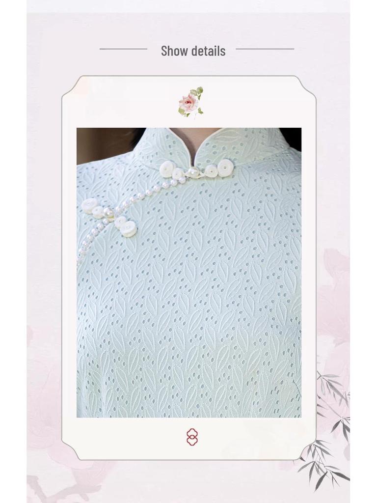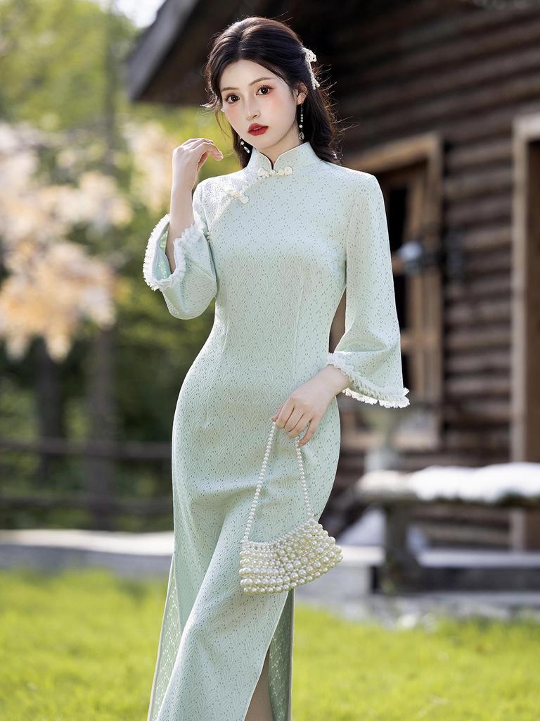 Цинъинь 2025 Водяной Зеленый Ципао: Элегантный осенний стиль с длинным рукавом для женщин