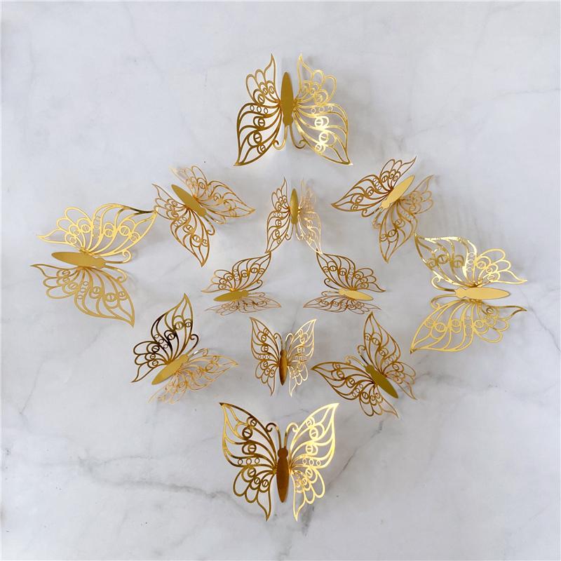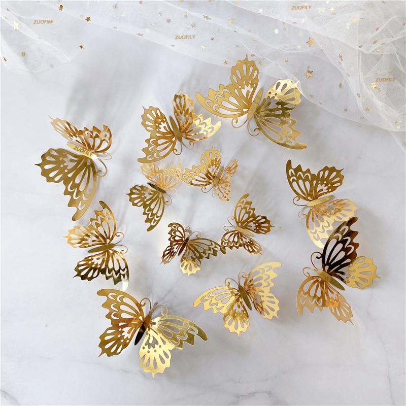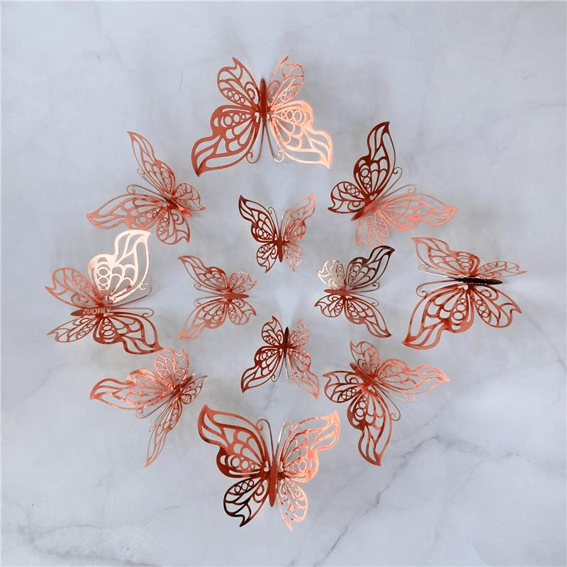 12Pcs/Set 3D Hollow Butterfly Wall Sticker Gold Silver Rose Wedding Decoration Living Room Home Decor Butterflies Decal Stickers KTY
