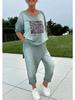 Женский осенний вязаный комплект с леопардовым принтом 2024: Европейский и американский повседневный комплект с круглым вырезом