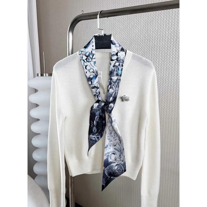 NINA SOLOR Elegant Ink Blue Twill Silk Scarf