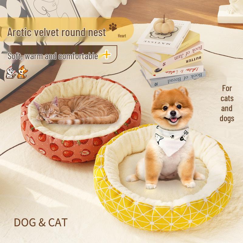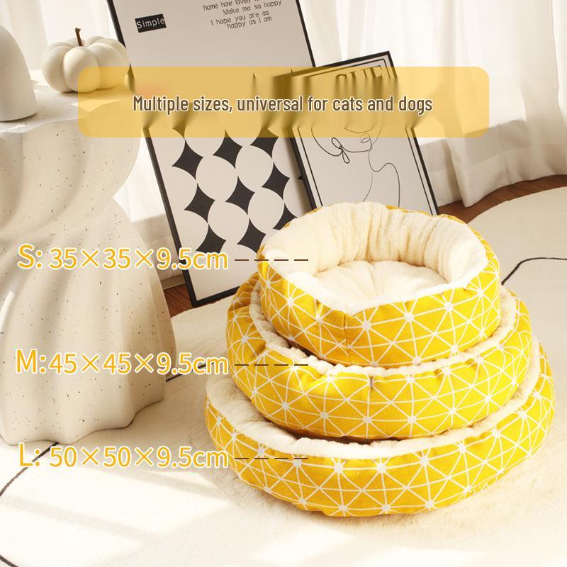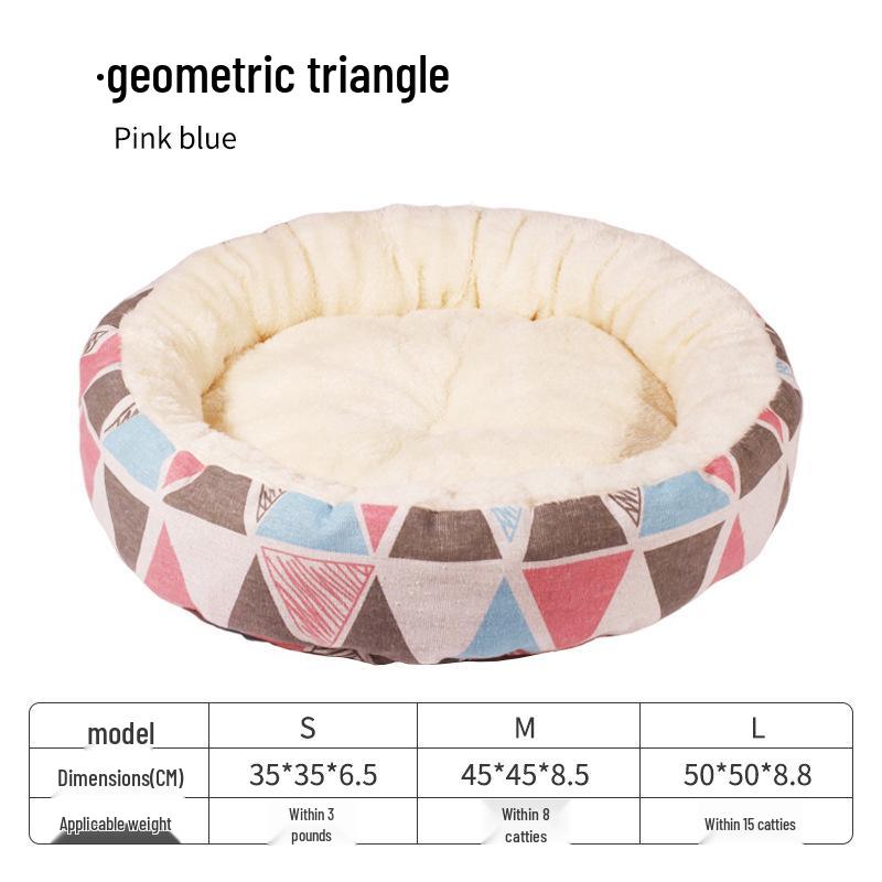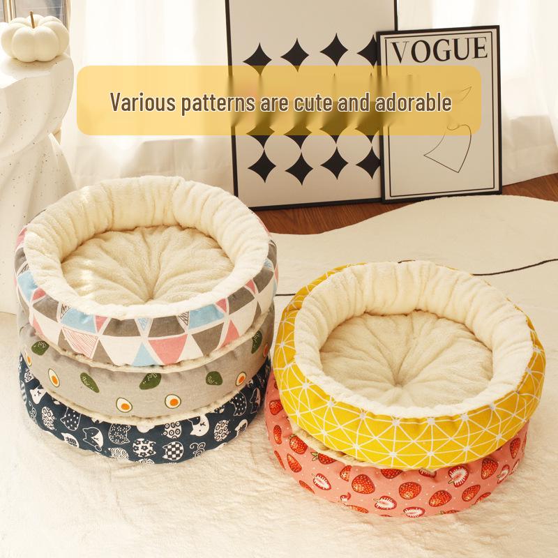 Уютная хлопково-льняная кошачья лежанка - Теплая, легко чистящаяся, круглая лежанка с принтом для котят