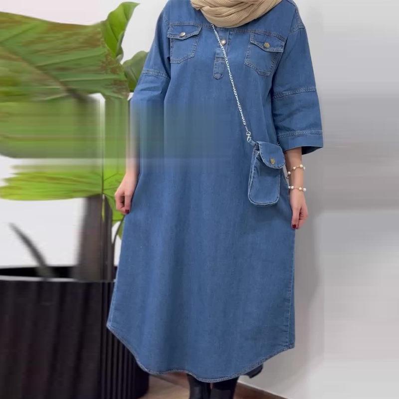 Повседневное джинсовое платье свободного кроя однотонной расцветки для женщин, осень 2024 — купить товар онлайн с бесплатной доставкой по всему миру!