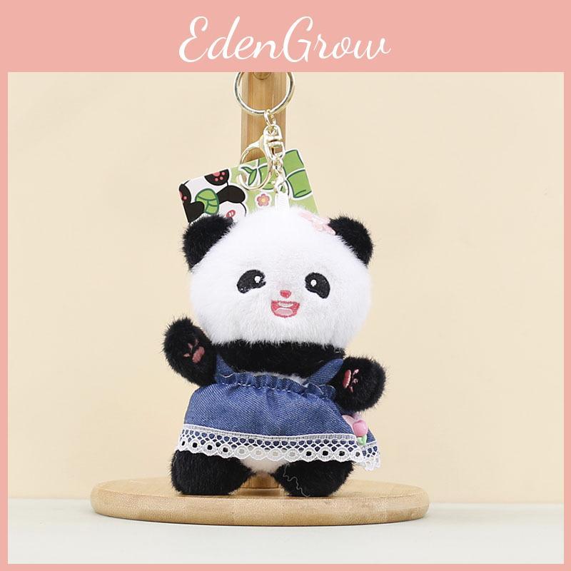 Plush Panda Doll Keychain Pendant Wearing Lace Edged Denim Skirt Design For Kids