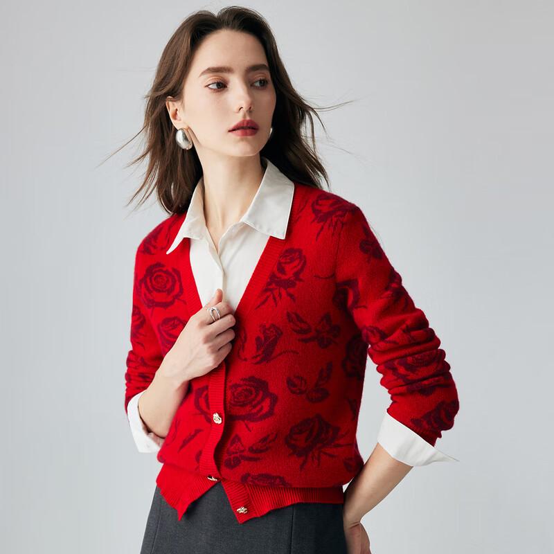 Женский романтический кардиган PALUOPO из кашемира с жаккардовым узором в виде роз