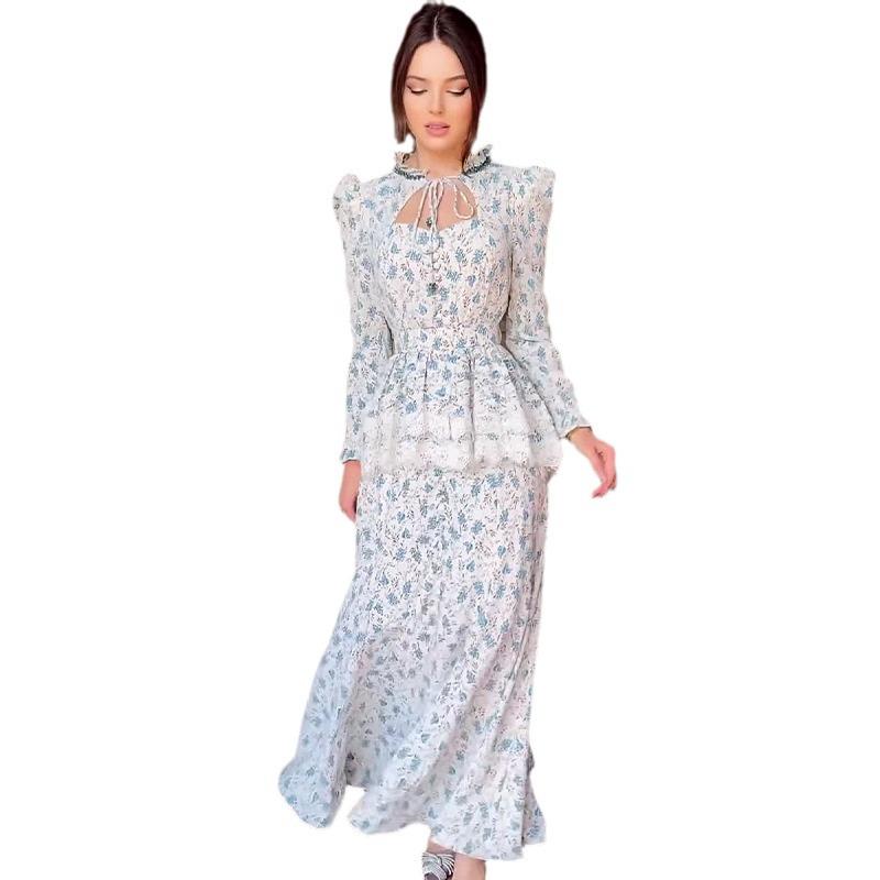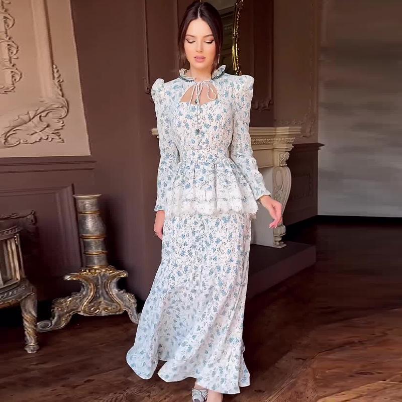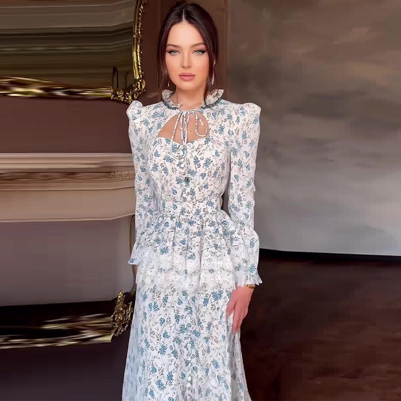 2024 Осень Женское Французское Платье-Двойка для Чаепития, Приталенное Длинное Платье