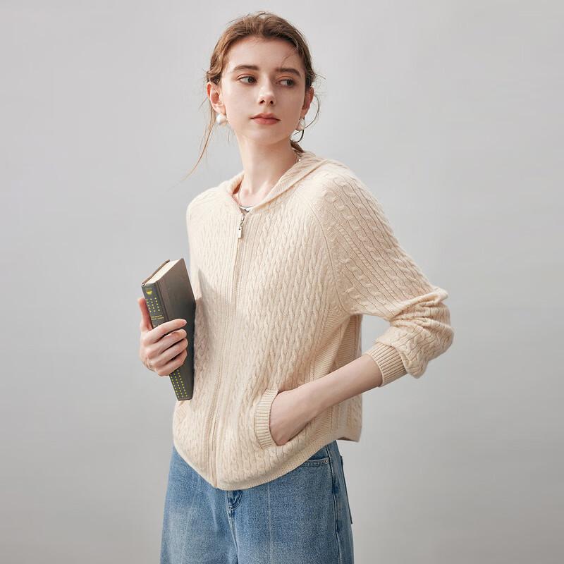 Komonboka Women's Hooded Cable Knit Cashmere Cardigan