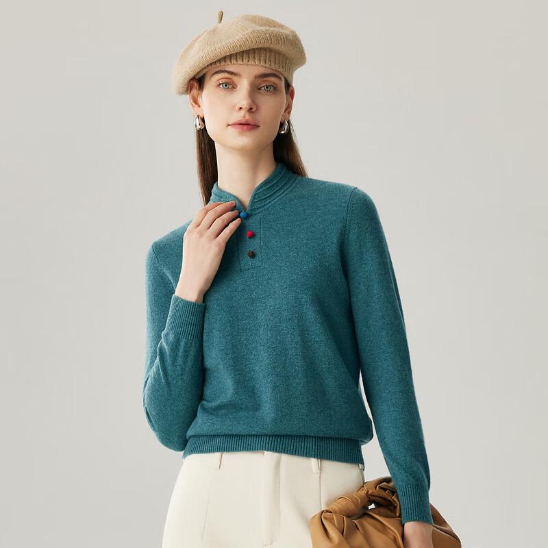 Zhaojun Women's 2025 A/W Chinese Style Cheongsam Collar 100% Cashmere Knit Sweater