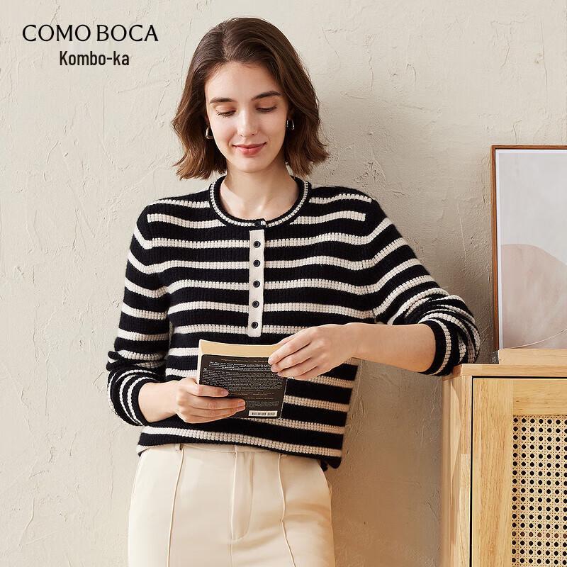 Kemon Boca Women's Striped Round Neck Cashmere Sweater