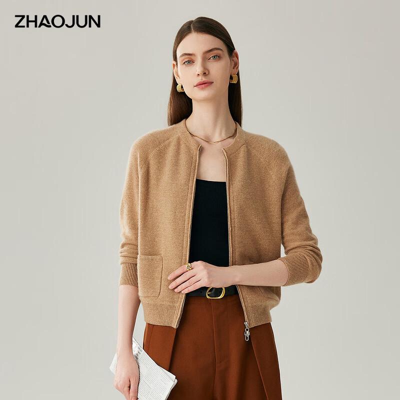 Zhaojun Women's 100% Cashmere Thick Round Neck Cardigan