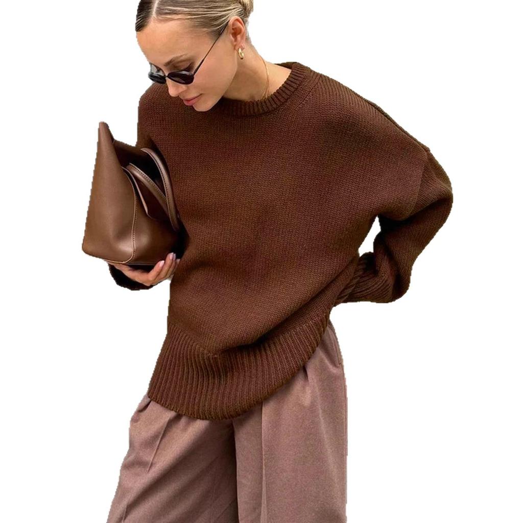 Женский однотонный свитер-пуловер в рубчик - Осень/Зима, Свободный крой, Круглый вырез, Повседневный стиль — купить товар онлайн с бесплатной доставкой по всему миру!
