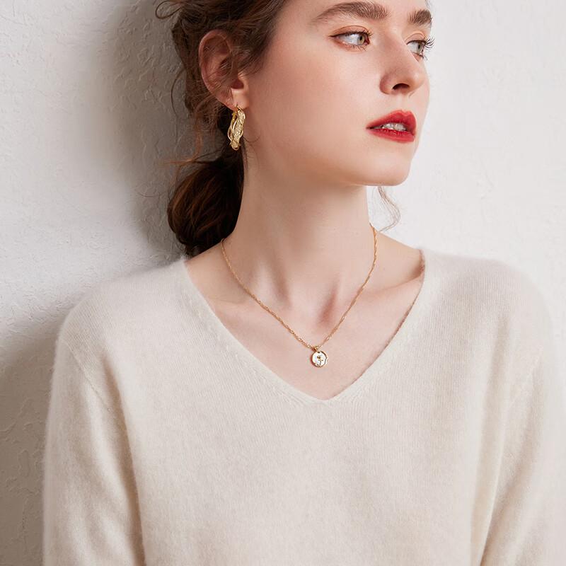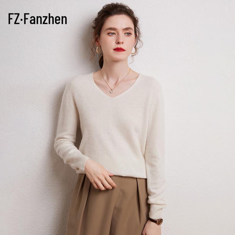 Fanzhen Women's V-Neck 100% Cashmere Sweater