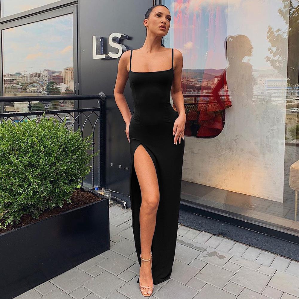 Новая Европа и Америка Слинг На одно плечо Облегающее Без спины Сексуальное Платье с разрезом