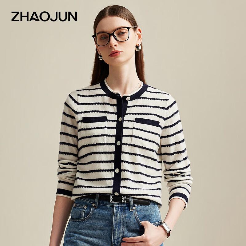 Zhaojun Women's Striped Pure Cashmere Round Neck Cardigan — купить товар онлайн с бесплатной доставкой по всему миру!